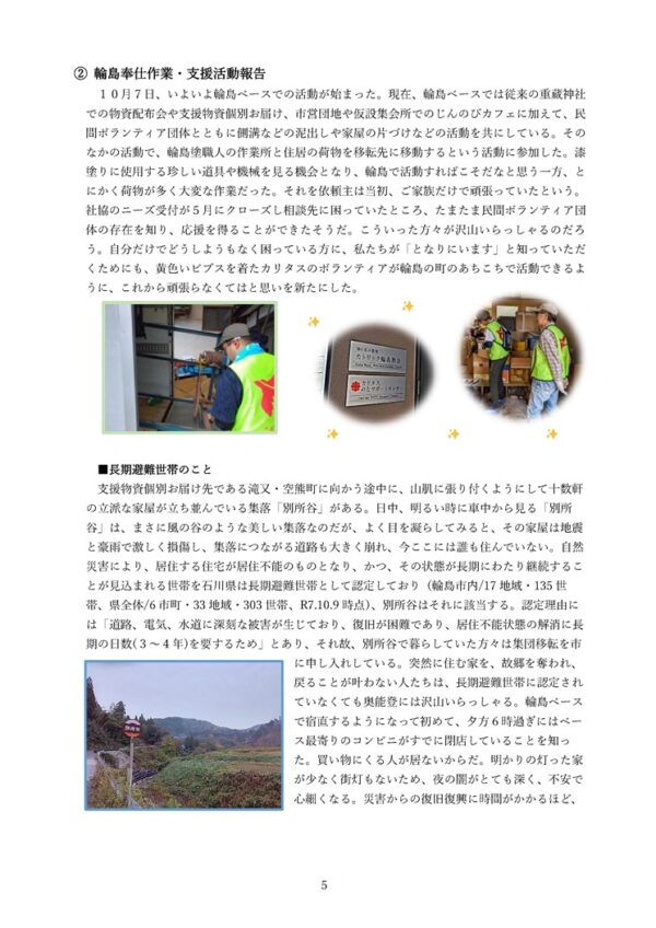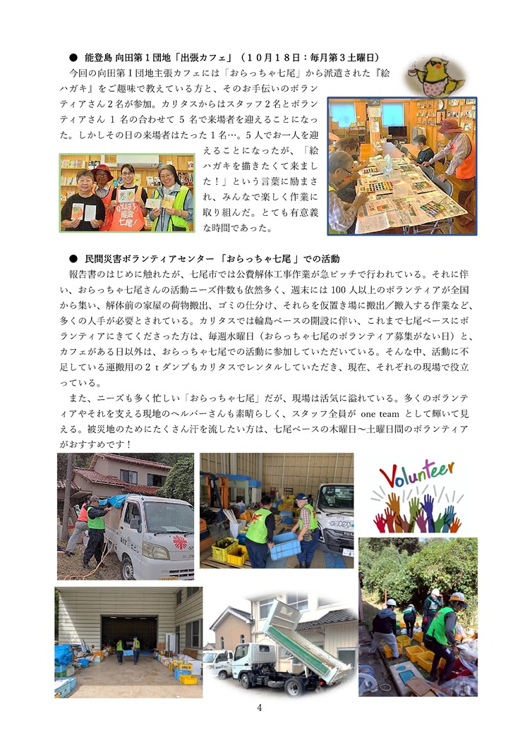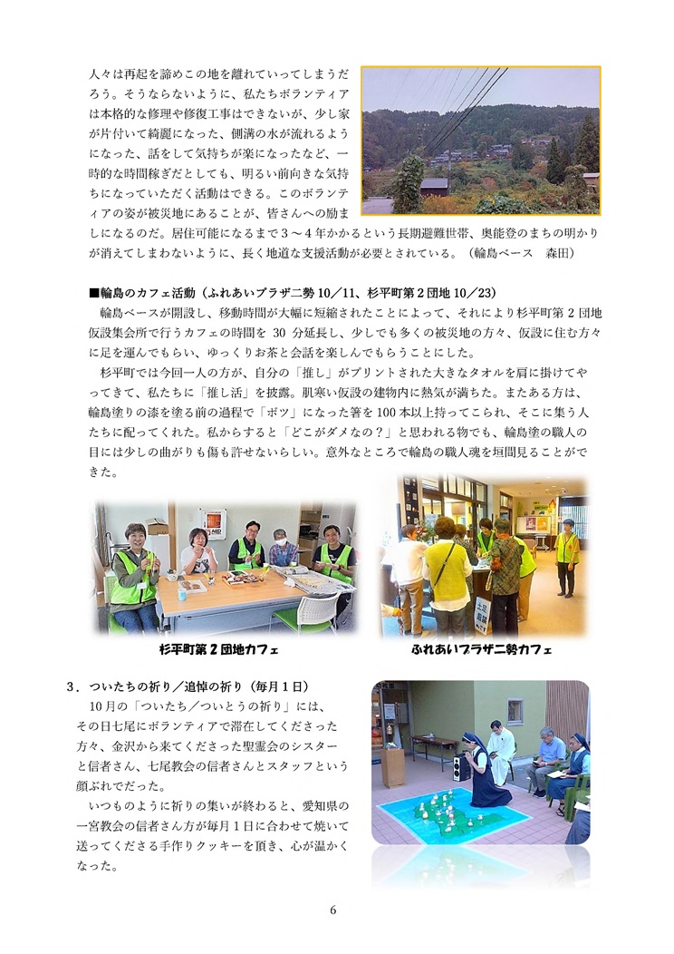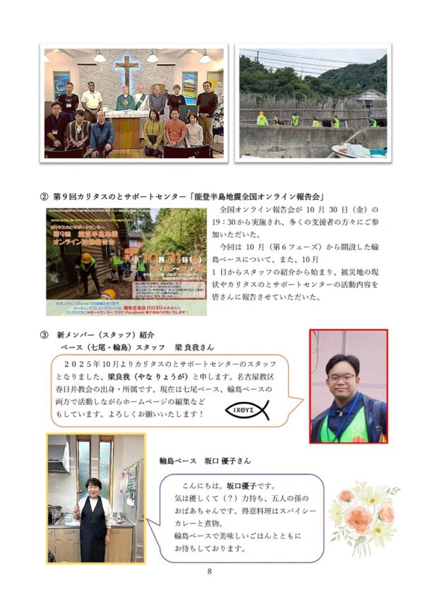 名古屋教区では、能登半島地震の災害支援を継続しています。本年10月の報告書を掲載いたしますので、ご一読いただけますと幸いです。ファイルはJPEG形式にしています。