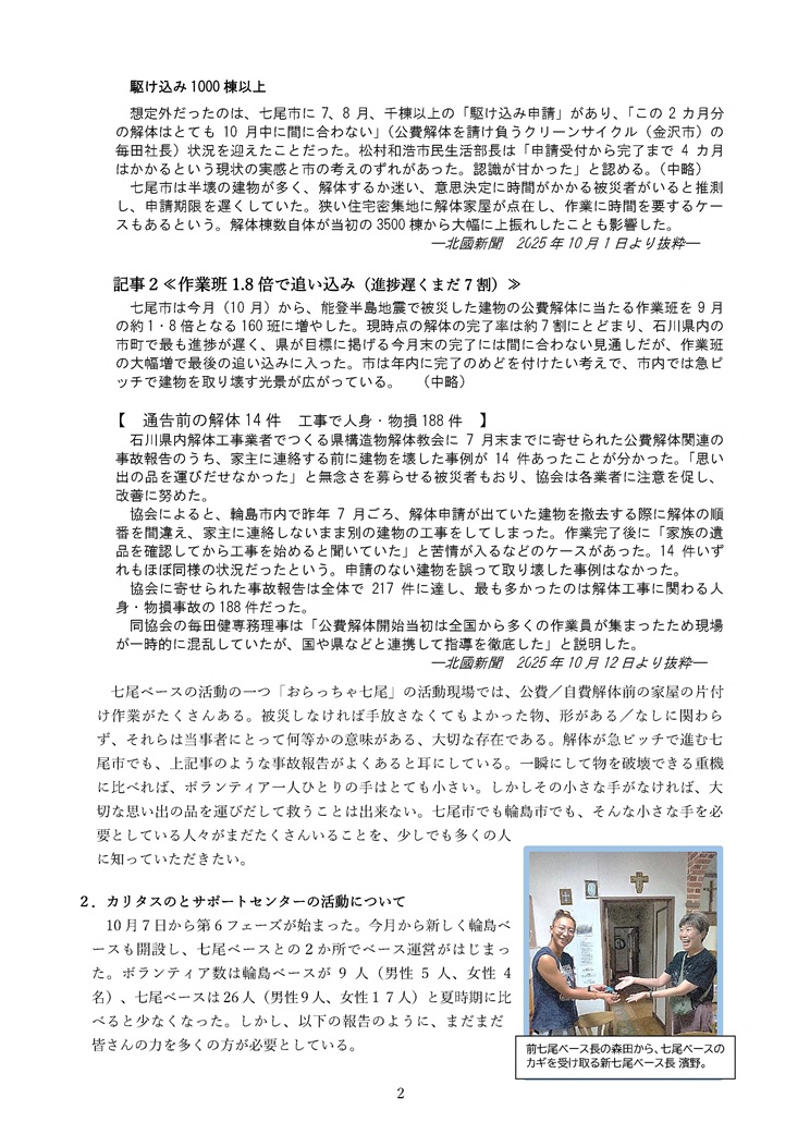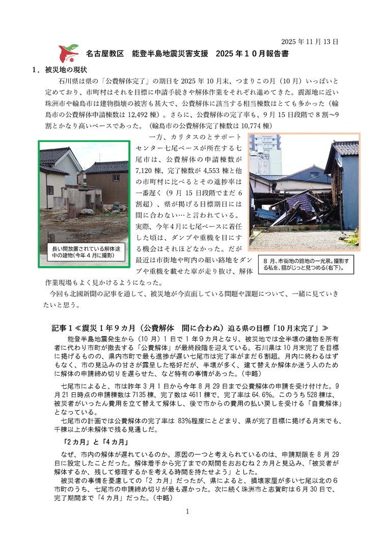 名古屋教区 能登半島地震災害支援 2025年10月報告書